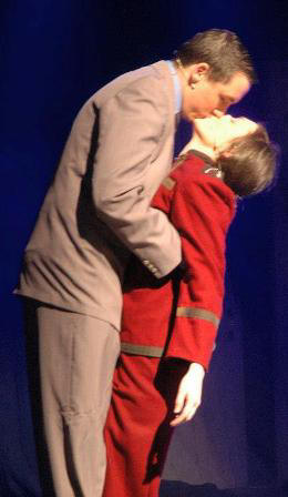 Sky Masterson (James Randell) Kisses Sarah Brown (Rhiannon Owen). A Bushel & A Peck