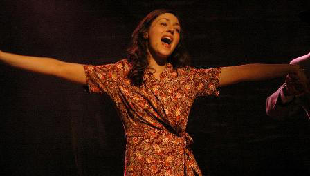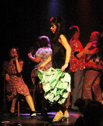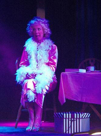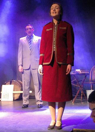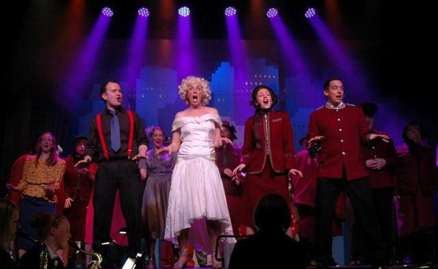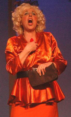 Left: Adelaide (Angie Dymott) Sits down in the club. Guys 'N' Dolls