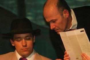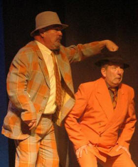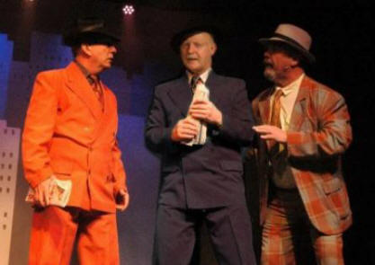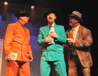 Left: Benny (Iain Campbell) & Nathan Detroit (Tim Driscoll) Right: Benny, Harry the Horse (Steve Williams) & Nicely Johnson (Mike Beavan), Benny & Nicely ask Harry where the "crap game" will be. Havana