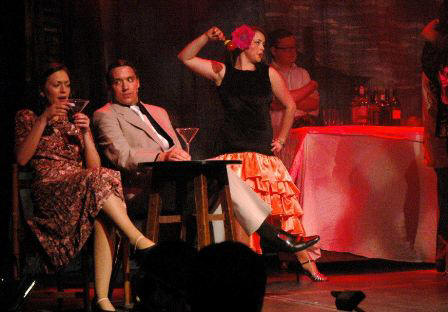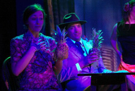 Everything begins to get frosty & fights start breaking out. Anna Constantinou (centre) storms away as Richard Jones & Mike Beavan double up as Cuban gentries, who also start to brawl with each other (right). Miss Brown just continues drinking (Left) If I were a Bell