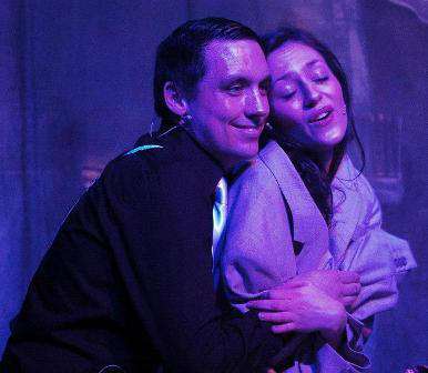 Left: Sky (James Randell) & Sarah Brown (Rhiannon Owen) sing "I'll Know" Right: Rhiannon Owen
