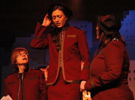 Mission band lead by Sarah Brown (Rhiannon Owen) centre. Left: Judith Smith, right: Hilary Evans I'll Know