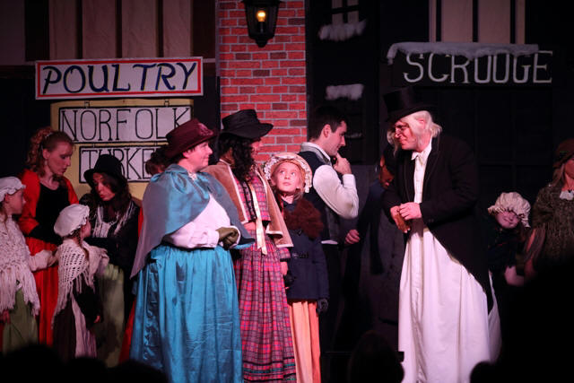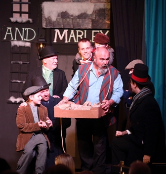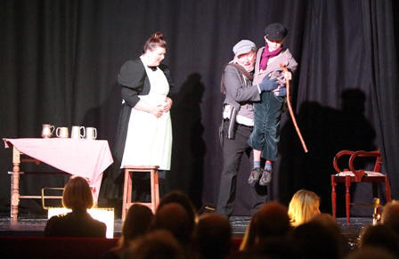 Bob Cratchit (Iain Campbell) carries in Tiny Tim Dylan Jones