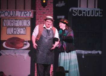 Scrooge (Tim Driscoll) with Ghost of Christmas Past Becky Church Scene 8 - Fezziwig's Office Heart of Gold, Fezziwig's Ball, Heart of Gold (reprise)