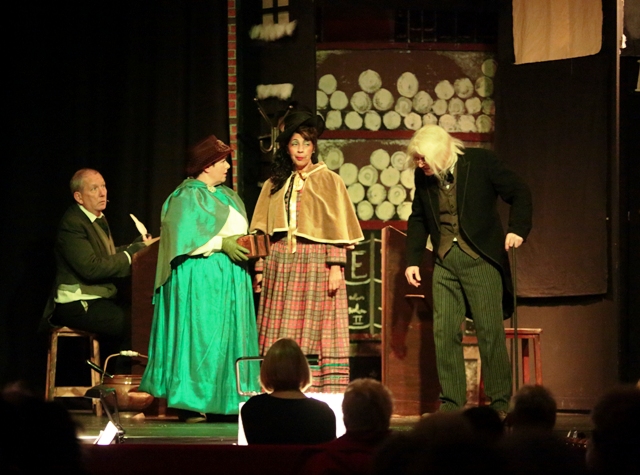 The Charwoman Fleur Greening & Mrs Dilber Karen Thomas try & sell what they have taken from Scrooges mansion to Old Joe (Steve Williams) who examines their items Scene 17 - Graveyard Tiny Tim