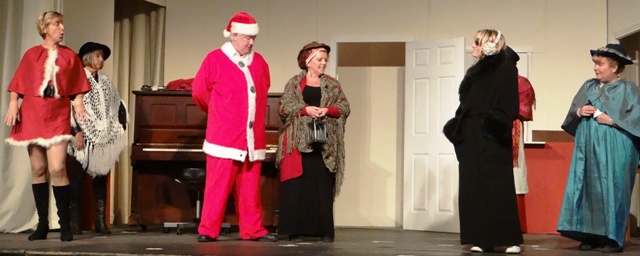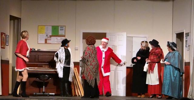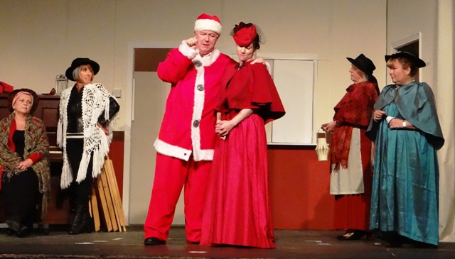 John (Martyn Lench) enters dressed as Santa for the kids of the village.
