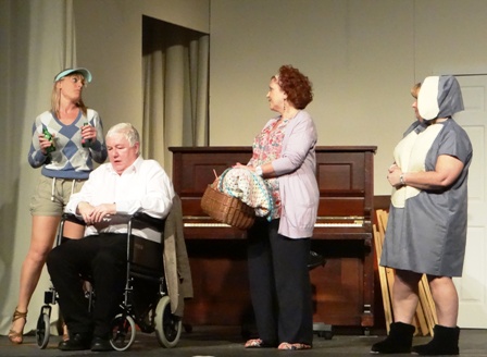 Celia (Feur Greening) enters with John (Martyn Lench) in a wheelchair