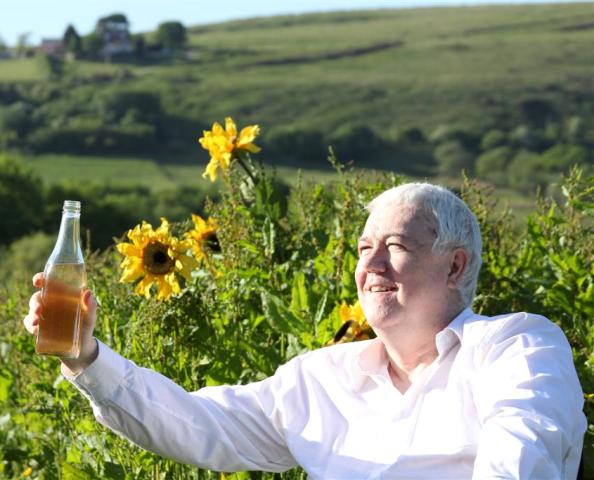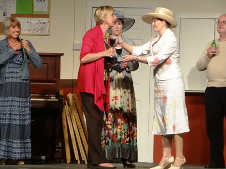 John (Martyn Lench, Annie's Husband) enters with a bottle of his vintage "John Clarke's Pentyrch knee trembler".